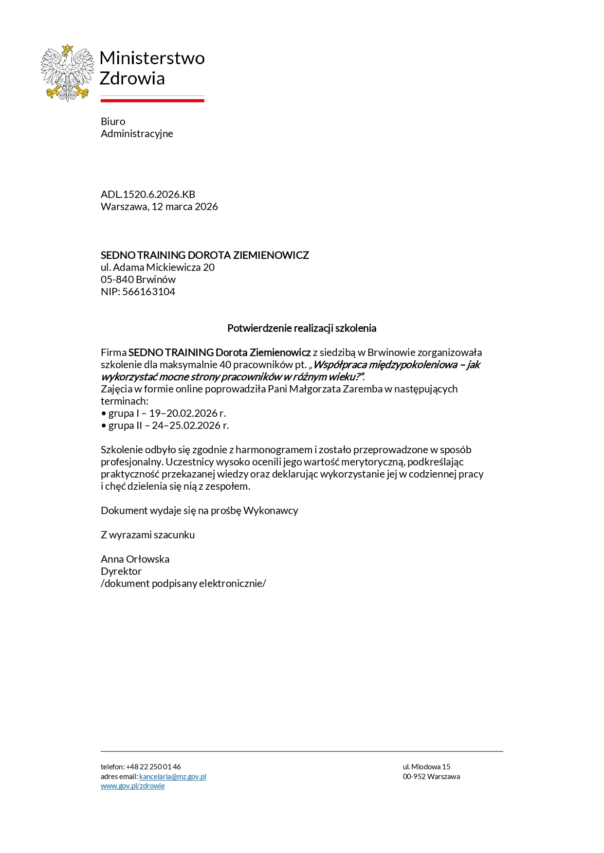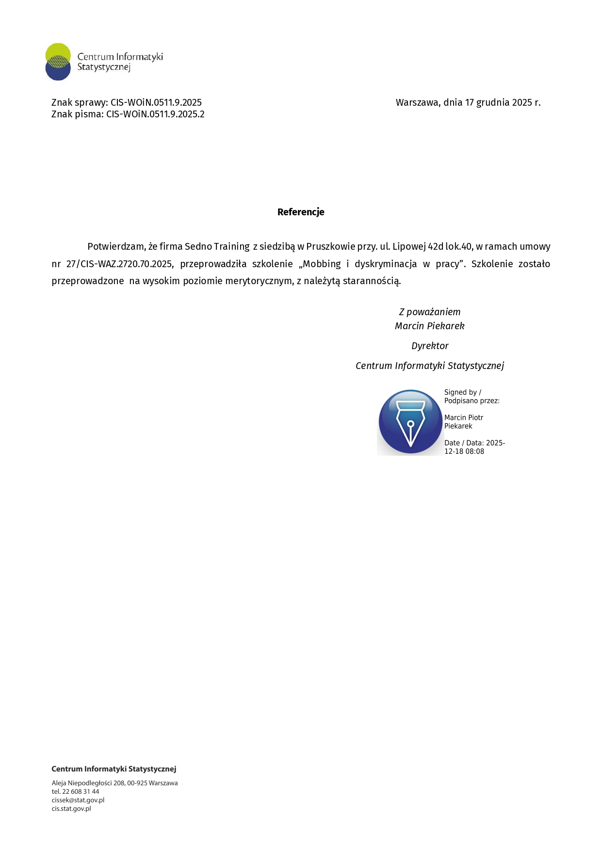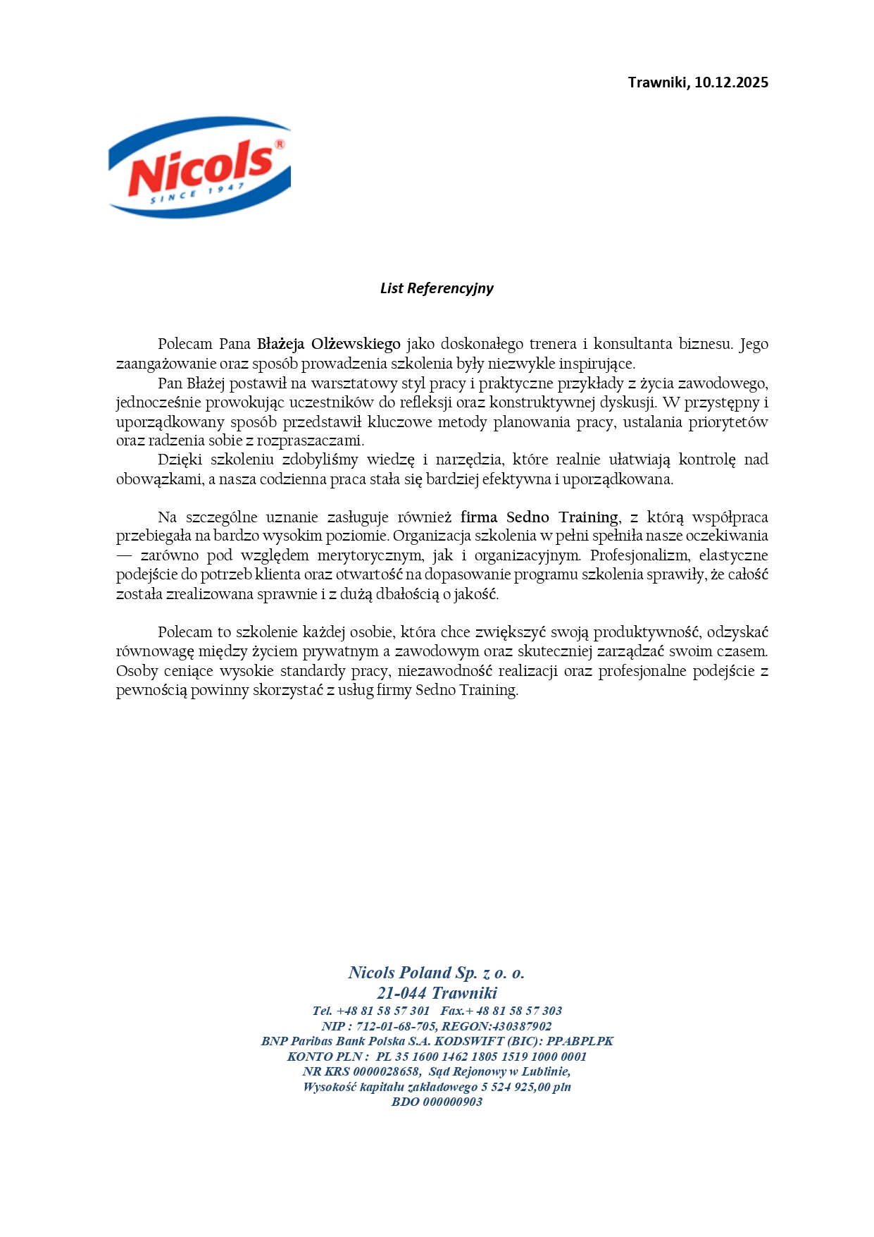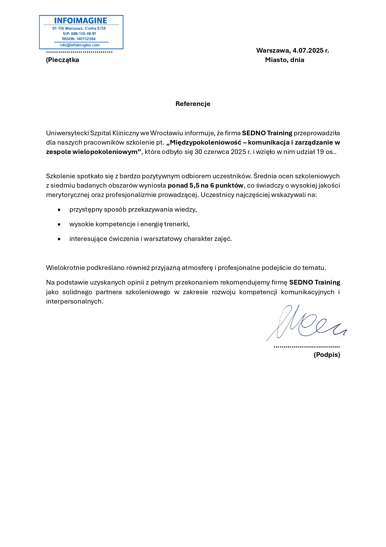 Referencje i opinie o szkoleniach SEDNO Training